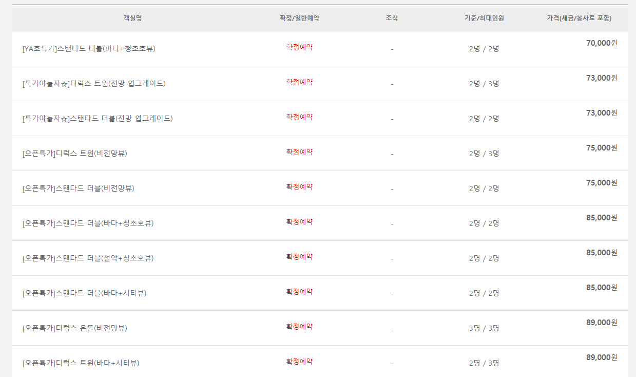 음...? 큰 폭의 가격 할인폭은 아니지만.. 객실별 가격을 한번 알아보겠습니다
