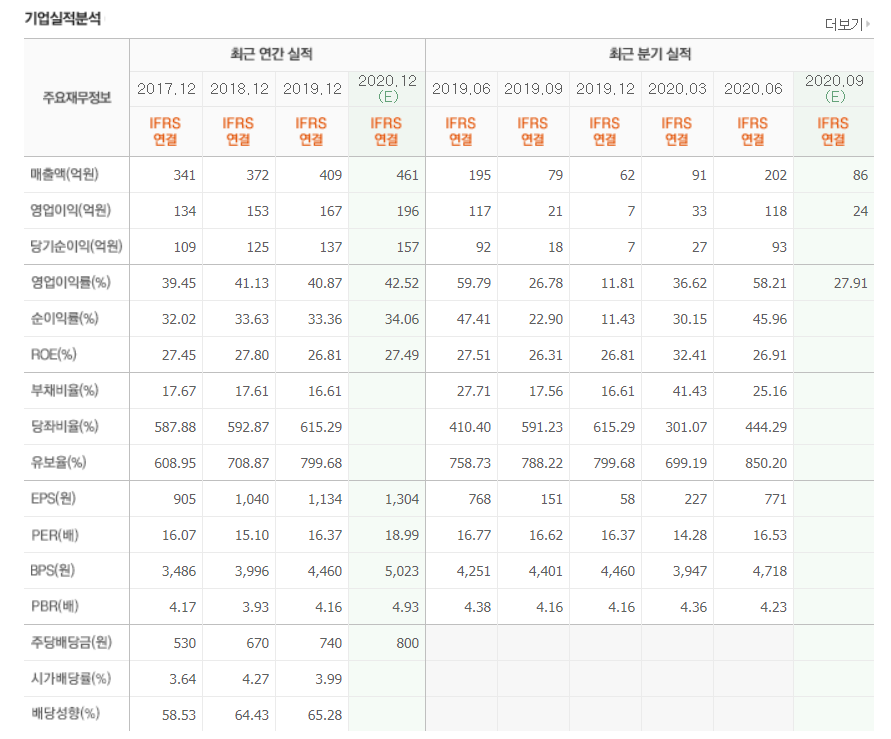 주가가 계속 오를 수 밖에 없는 매출액이다. 점진적으로 상승하고 있으면서 영업이익률이 자그마치 40%대로 이또한 점점 상승하고 있는 추세이다(영업이익률이 굉장히 높은 편이다). 이러한 이유는 기업평가의 경우, 이크레더블 내부의 평가 시스템이 알아서 평가해주기 때문에 삼성과 같은 제조업과는 달리, 원자재값도 들지 않고 그냥 프로그램을 돌려버리기 때문에 가만히 앉아서 돈버는 구조이다. 한 번 만들어둔 시스템이 자리를 지키며 100명 이상의 몫을 해내는 것이다. (인건비도 더욱 절약되는 이유이다) 따라서 ROE도 좋게 나올수밖에 없다.. 부채비율, 유보율 등 좋지 않은 지수들까지도 수치가 좋다. 이렇게 최소한의 시스템으로 최고의 성과를 만들기 때문에 배당성향도 높아지니 주주들은 이크레더블을 업고 다니고 싶어할 것이다. 이러한 이유 때문에 이크레더블 배당은 꾸준히 성장할 수 밖에 없다.