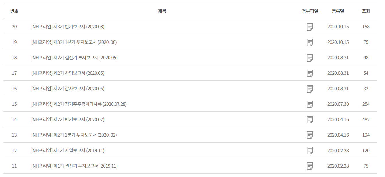 (근데 조회수가..?) nh프라임리츠는 말 그대로 소액주주들이 대부분의 주식을 가지고 있는 것으로 알고 있는데 조회수가 형편없다. 본인들이 투자한 종목에 대해 이렇게나 관심이 없나라는 생각이 들었다.