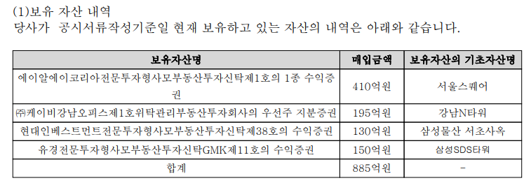 우리의 투자금은 이 빌딩들에게 투자되어 건물들의 임대료를 받아 우리에게 배당금을 지급해주는 구조이다.