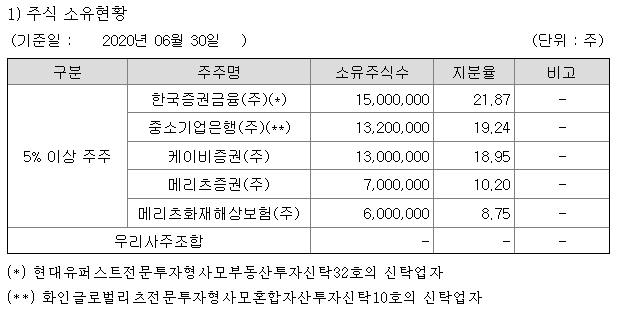 ■ 제이알글로벌리츠 지분구조는 어떻게 되어있을까?