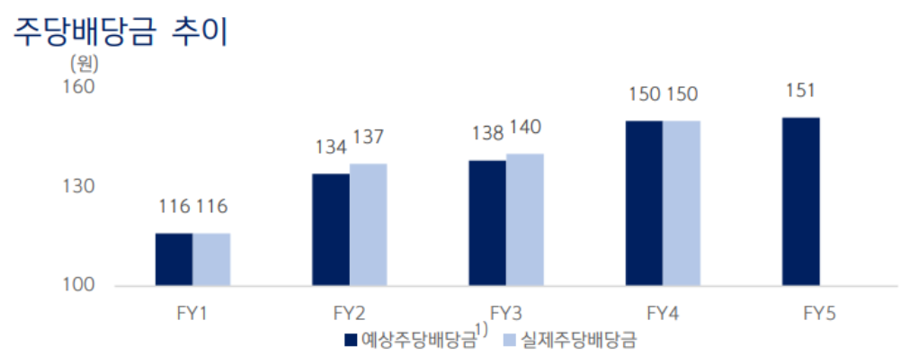 결론적으로 점차 배당금이 상승하는 추세이며 이번년도 상반기는 151원 배당하였고,