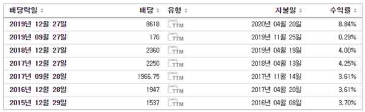 개인적으로 이렇게 들쑥날쑥 한 배당은 딱히 선호하진 않습니다. 저는 개인적으론 반기배당을 더 선호하는데요