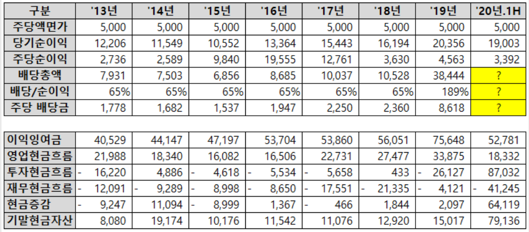 여기서 눈치빠른 분은 바로 보셨을지 모르겠지만, 19년 폭탄배당한 이유를 여기서 알 수 있습니다.