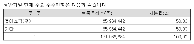 롯데쇼핑이 지분률이 50%나 되긴 한다,