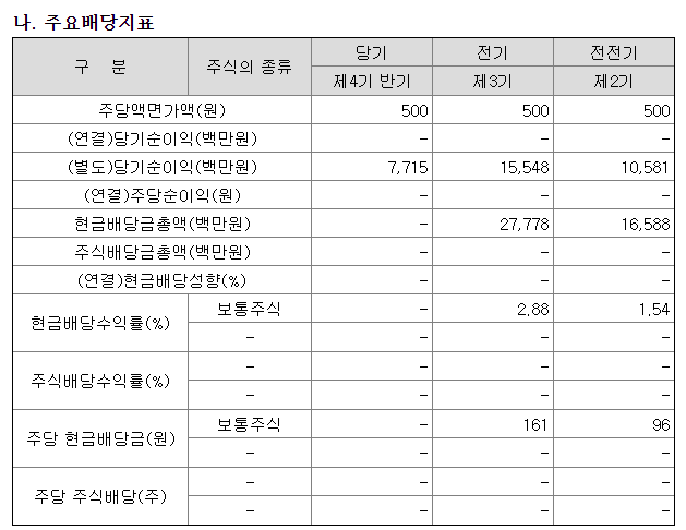 2기, 3기, 4기로 점차 접어들수록 주당 현금배당은 점차 증가하는 것을 볼 수 있다.