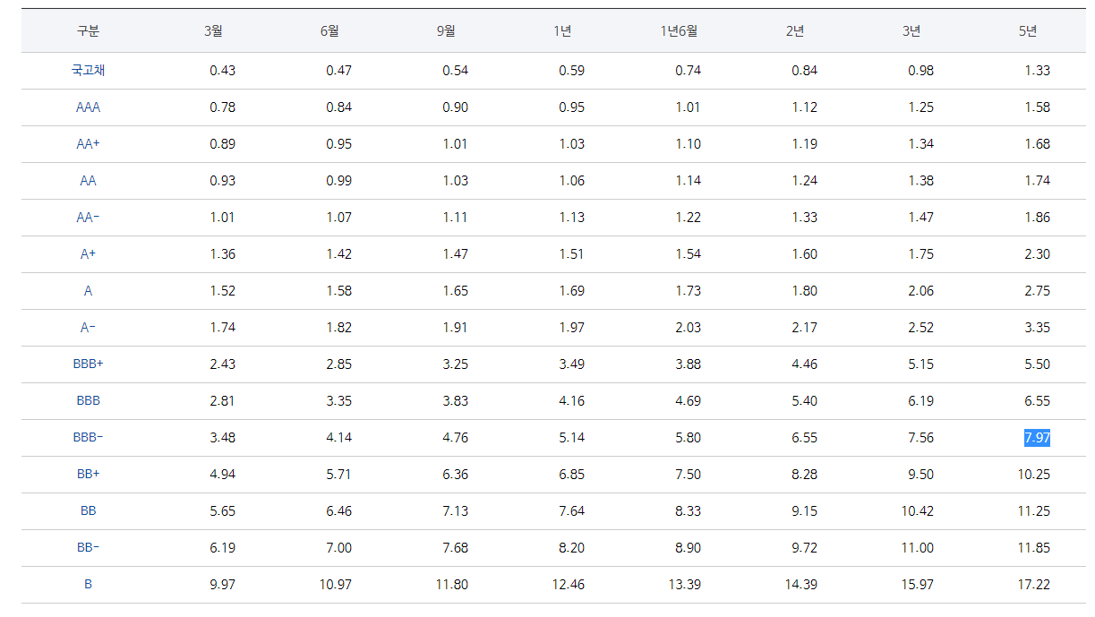 사경인 회계사는 요구수익률을 신용평가 등급별 금리스프레드에서 BBB- 등급 5년금리를