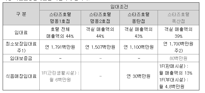 임대료는 매출액의 일정 비율을 임대료로 수취하고 있다. 매출비율로 책정된 임대료가 최소보장임대료를 하회할 경우, 운영사는 계약상 최소보장임대료를 지급하게 된다.