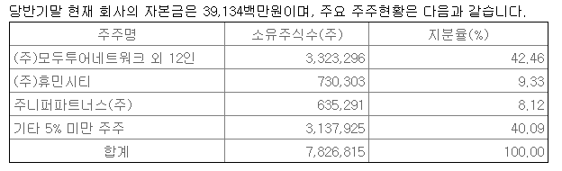 모두투어네크워크 외 12인이 42.46%의 지분을 가지고 있고,