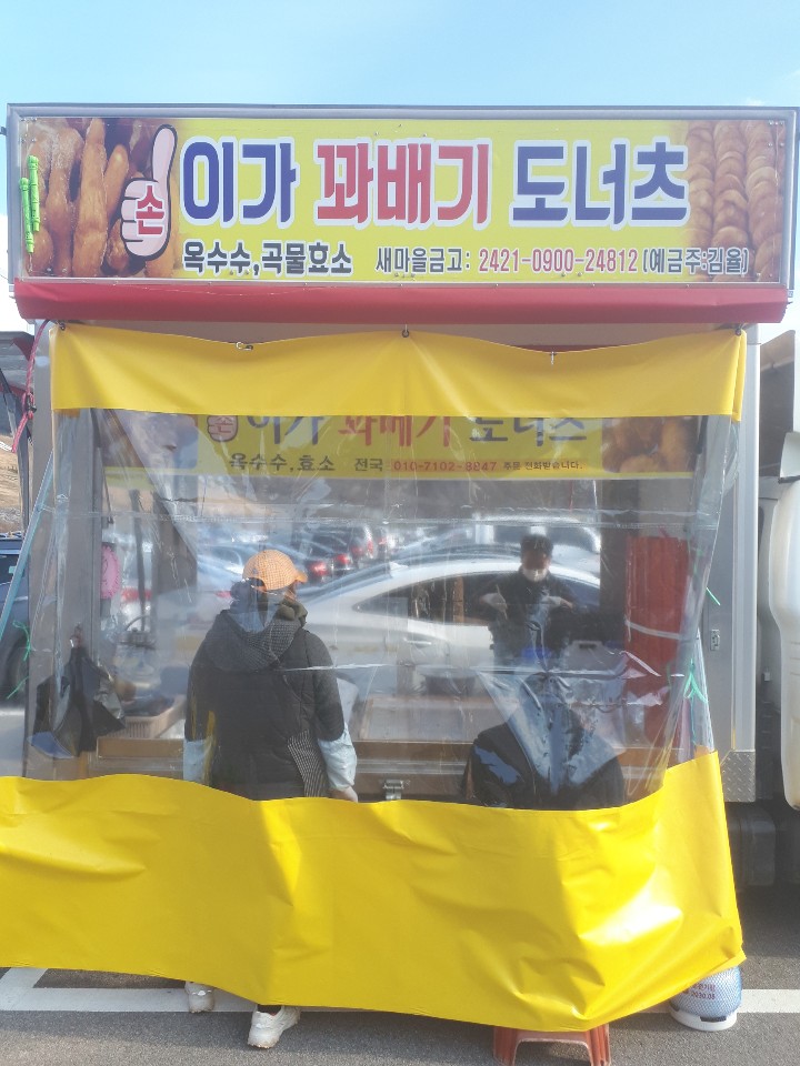 4-5가지 정도의 노점상들이 보이고, 나는 커피나 마실 것 대신 소떡소떡을 주문했다.