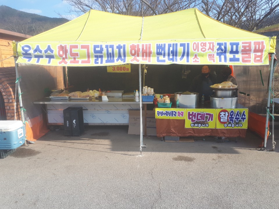 3,000원 지출했다. 여기 노점상에서는 옥수수, 부산오뎅 등 여러가지 음식을 판매하고 있다.