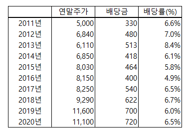 2011년부터 2020년까지 꾸준히 배당금 성장이 이뤄지고 있는 맥쿼리인프라,