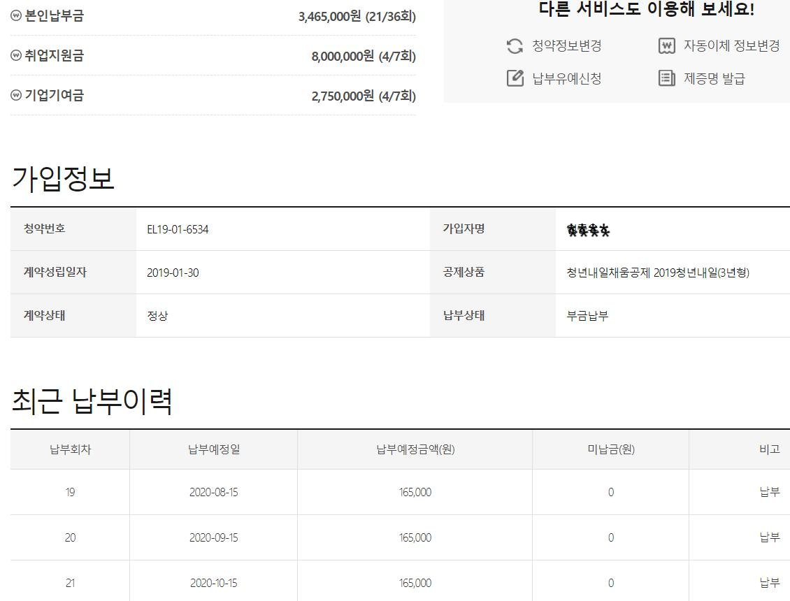 신청한지 21개월이나 됐다니2018년 9월에 입사해서 3개월동안 인턴기간 후2019년 1월 말에 신청했으니..지금이 11월이니 곧 만2년을 채우게 되겠네요 ㅎㅎㅎ (청년내일채움공제 3년형이므로 아직 한참 남았습니다)